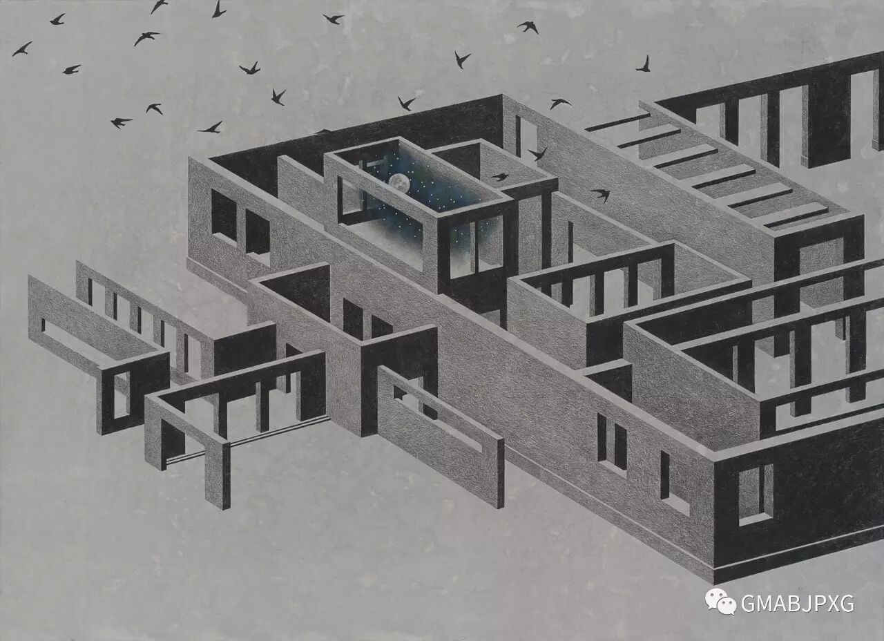 2015驻馆艺术家 尹俊锳 陌生的结构 2016 高丽纸水墨设色,炭笔 91x116cm